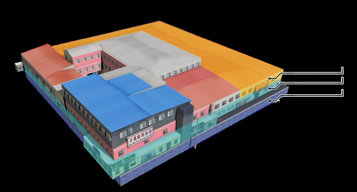 事发建筑为砖混结构(彩钢板顶),东西长82米、南北宽75米,占地面积6150平方米,建筑总面积为19558.58平方米。事发建筑分为地上和地下两部分,地上部分二层、局部三层,整体呈“回字形”结构。外围建筑一层为底商,二层西侧和北侧为聚福缘公寓(共103个房间)。事发建筑内共有单位26家(4家取得营业执照、22家无营业执照)。地下部分共一层,为在建中型冷库。事发建筑系集生产、经营、储存、住宿于一体的“多合一”建筑。