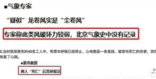 但在工地上发生的平地起龙卷风却是真的,工地被折磨的一片狼藉也是真的,工地工人出现过伤亡也是真的,而面对具有这么大破坏力的龙卷风北顶娘娘庙却完好无损也是真的,这些事情都有各大报社报道为证。这件事其中的缘由想必各位都有自己的判断了!