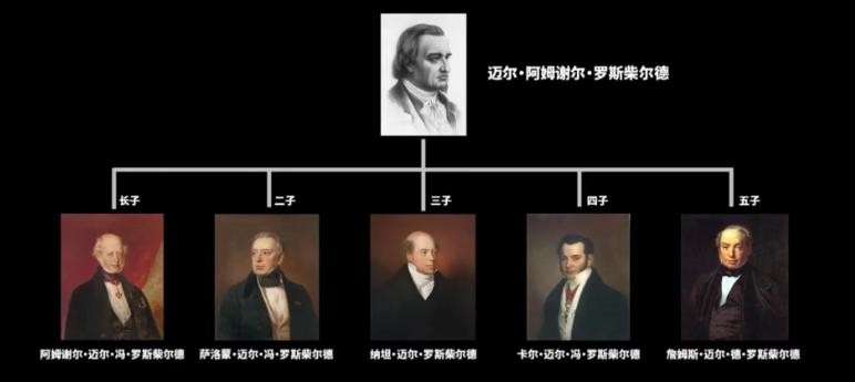 1785年,老梅耶创办罗斯柴尔德家族银行,主要经营银行业务。他还将五个儿子分别派往英国伦敦、法国巴黎、奥地利维也纳、德国法兰克福和意大利那不勒斯这五个重要的欧洲城市,建立起庞大的金融网络,使家族一步步走向辉煌。