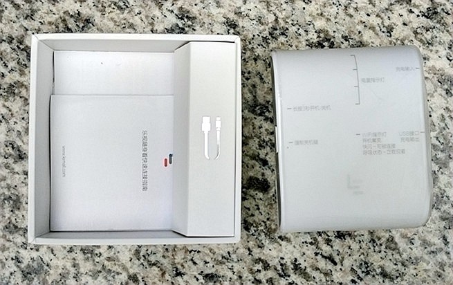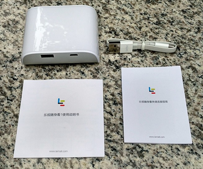 乐视随身看见到箱子打开了,就从箱子内跳出来,并指挥它的配件:USB充电线、快速连接指南、使用说明书走出箱子,并列队接受大伙的检阅。