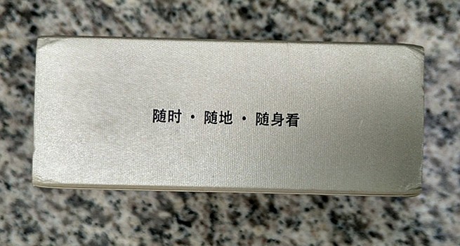 乐视随身看的包装箱子身材小巧,外面穿了一件做工精致、布质底纹的淡金色纸外套,优雅、高贵、大方得体,它上面的设计简约大方,正面镀有产品的名称和乐视的logo以及官方网址;它的背面镀有乐视配合微信公众号、产品名称、型号、厂商名称、地址、网址、热线电话和防伪条形码;它的两侧面都镀有产品的功能:随时、随地、随身看。