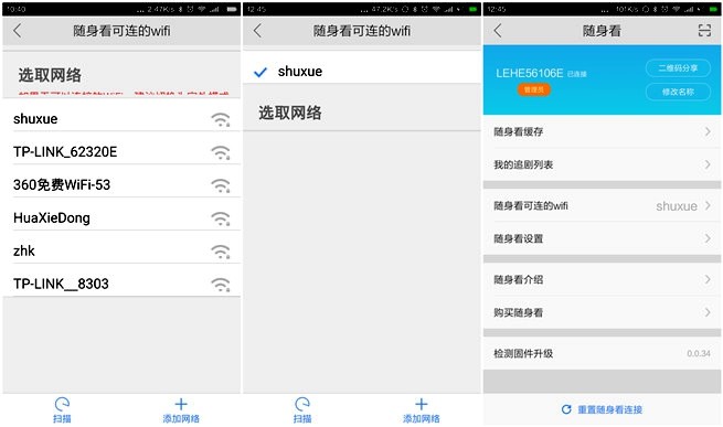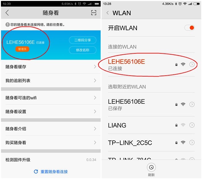 能将乐视网中的视频直接下载到乐视随身看中是它功能之一,所以先要将乐视随身看与乐视视频APP建立连接才能使用。先下载和安装乐视视频APP在手机桌面上,点开进入乐视的主页面,在主页面下方有“我的“按钮,点击进入”我的“页面,在这个在页面会发现有”我的随身看“,点击进入连接随身看的页面,再点击立即连接随身看,弹出扫描乐视随身看背面的二维码进入连接(在扫描之前先要长按3秒乐视随身看的”开/关机键“开机,当状态指示灯闪烁即为开机成功。),乐视视频APP就会自动搜索和连接乐视随身看,当连接成功,在随身看的页面会显示乐视随身看的名称已连接,同时在手机的WLAN页面也会看到乐视随身看的名称已连接,整个连接过程非常快速和顺畅,不错。