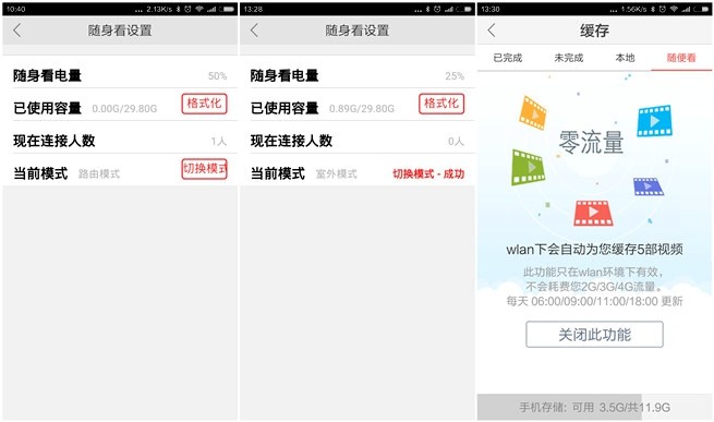 (2)在没有wifi网络的环境,欣赏随身看里面缓存的电视剧体验: