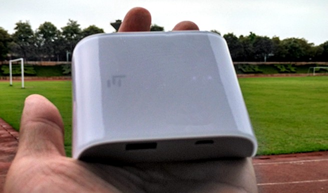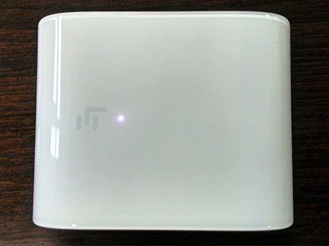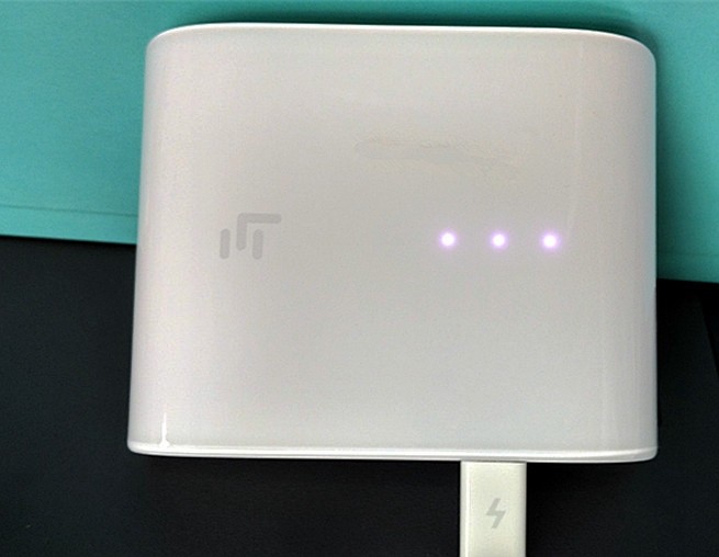 乐视随身看的正面镀有浅灰乐视LOGO和设置4颗电量指示灯和1颗WIFI状态指示灯。