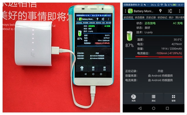 乐视随身看不止能追剧,还是电量的加油站,拥有10000mAh电池电量,输出为5V/2.4A,高达93%的转化率,兼容QC2.0快充技术,能够满足大多手机的快速充电需求(我测试它对手机充电的输出电流1036mA,很快),不管乐视随身看处在开机还是关机状态,只要连接手机数据线,都能为手机及时快速充电,所以可以实现充电追剧两不误。