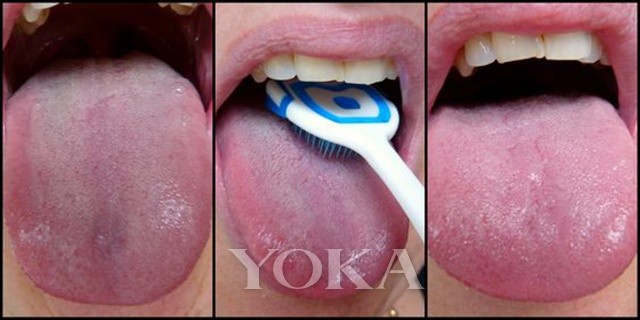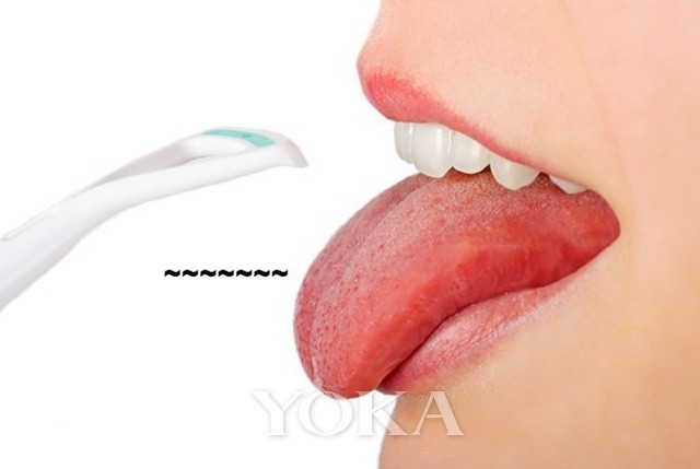 在清洁牙齿的时候不要忘记清洁舌头。伸出舌头,向后看,你会发现一个白色的或棕色的涂层,那里可以找到大多数引起口臭的细菌。使用舌刮板将它们清理干净。