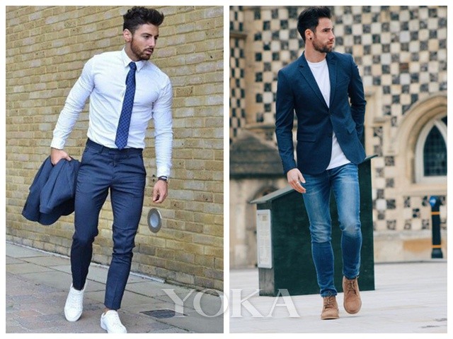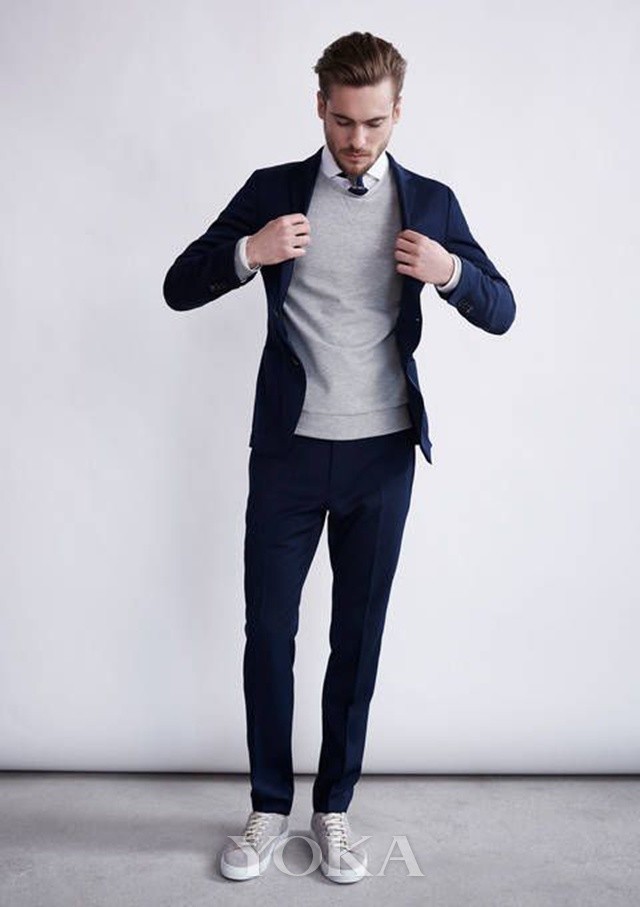 浅蓝+深灰(或者其它蓝灰搭配)彼此非常互补又都不会过于抢眼,是两种最nice的着装颜色。