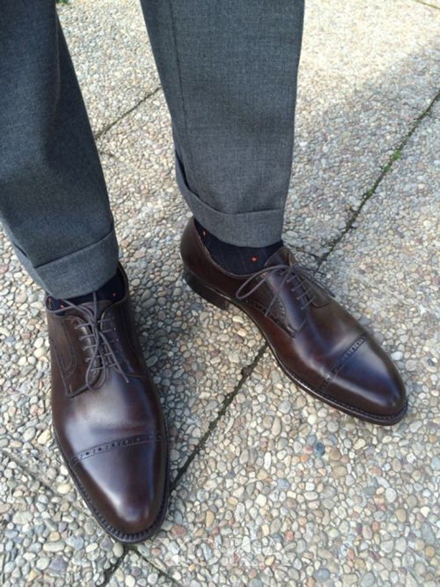 这个真是大大大大忌,皮鞋搭白袜子真的会让你立马变low,你不穿都比穿个白袜子强百倍。