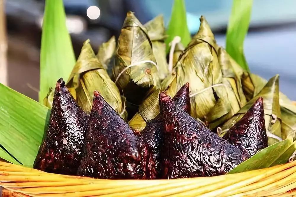 广西黑米粽子,是产自广西壮族地区的一种用黑色糯米制成的粽子,芳香扑鼻、软糯、清香,营养价值高,富含蛋白质、脂肪、糖类、钙、磷、铁、镁、维生素B1、B2、烟酸等,为温补强壮食品,具有补中益气,健脾养胃,止虚汗之功效,对食欲不佳,腹胀腹泻有一定缓解作用。
