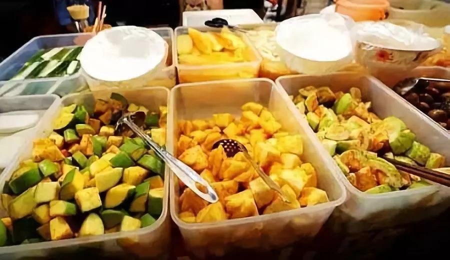该词是粤语用词,“酸嘢”又名“酸料”“酸品”,它是一种流行于广西各地的特产小吃,在大街小巷都可以看见,在南宁流传着这么一句俗语“英雄难过美人关,美人难过酸嘢摊”,嗜酸味,喜糯食,是广西人的饮食特点。酸味食品种类很多,萝卜酸、刀豆酸、豆角酸、茭子酸(茭头酸)、黄瓜酸、木瓜酸、沙梨酸、芒果酸等等。广西人一般作为零食食用,可以饭前开胃,也可饭后解腻,还可软化血管。