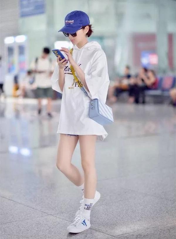 宋茜的这身T配浅蓝色牛仔裤,再穿双小白鞋,满满的休闲味。T恤和蓝色牛仔裤,配上小白鞋,让你清新整个夏季。