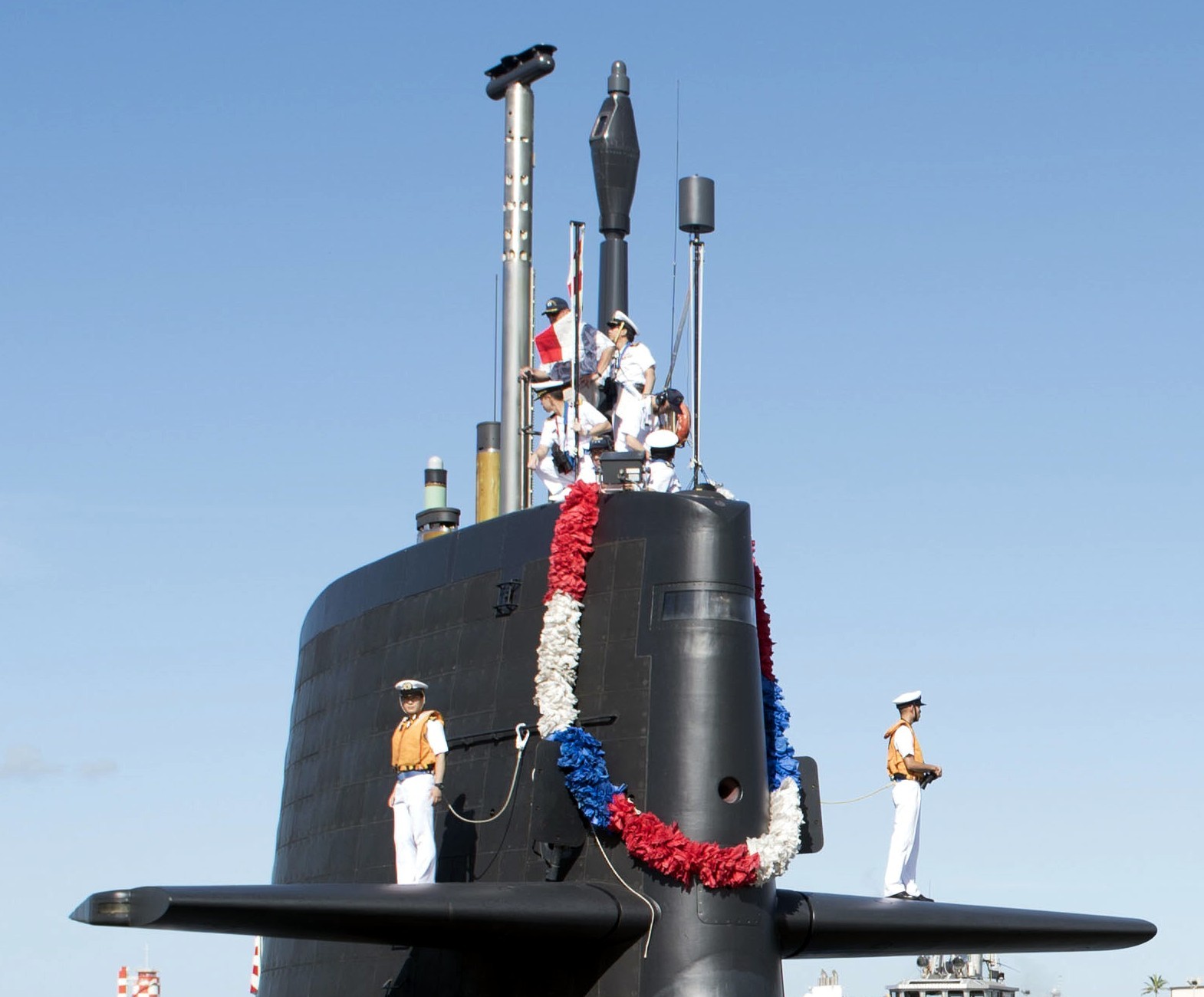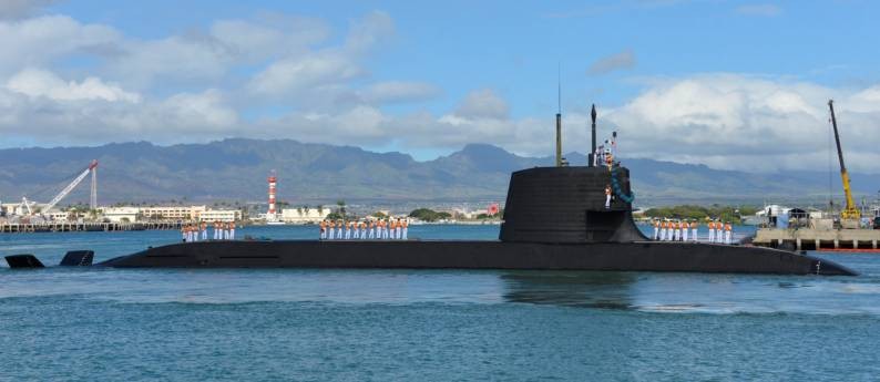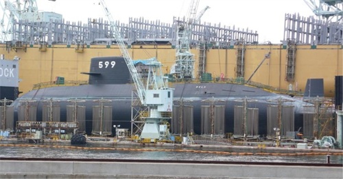 苍龙级潜艇,日本国,常规潜艇里的巨无霸.水下排水量达4200吨,主要武器:6×HU-605 533mm鱼雷. 共携带30枚,实战型AIP系统 降噪技术优良,机动性强,搭载有高性能的声呐装置,具有强大的搜索和隐身性能力.2009年开始服役,已经有了十几艘,尤其是第11艘开始,"凰龙"使用了日本汤浅公司研发的锂电池,不再是之前的铅酸电池,世界上首艘使用锂电池提供动力的潜艇.第六艘潜艇的成本估计为5.4亿美元,高得吓人,不过对日本装备而言,反而是一种正常现象,便宜了反而不正常,
