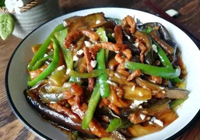 材料:茄子4个、尖椒4个、猪肉100克、油盐适量、葱1段、姜1片、大蒜2瓣、生抽1汤匙、老抽1/2汤匙、水淀粉适量