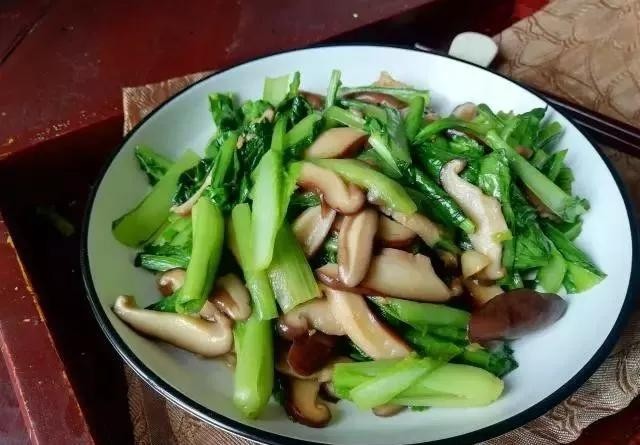 材料:小白菜250克、香菇250克、油盐适量、葱1段、姜1片、大蒜2瓣、蚝油1汤匙、