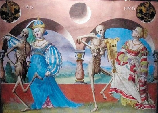 图3:尼古拉斯所绘伯尔尼死亡之舞(复制品)局部,原作绘于1512年(图片来源:维基百科)