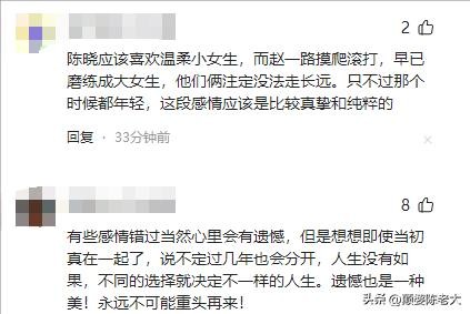 当时两人在很多方面都是不相配的,陈晓是科班出身,家里条件不错,刚出道就出演了男主角,两人之间的差距太大了,所以最终没有公开在一起,可能也是权衡利弊的结果吧。