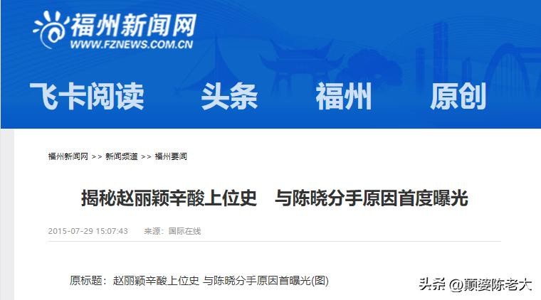 1. 福州新闻网,2015.07.29,揭秘赵丽颖辛酸上位史 与陈晓分手原因首度曝光