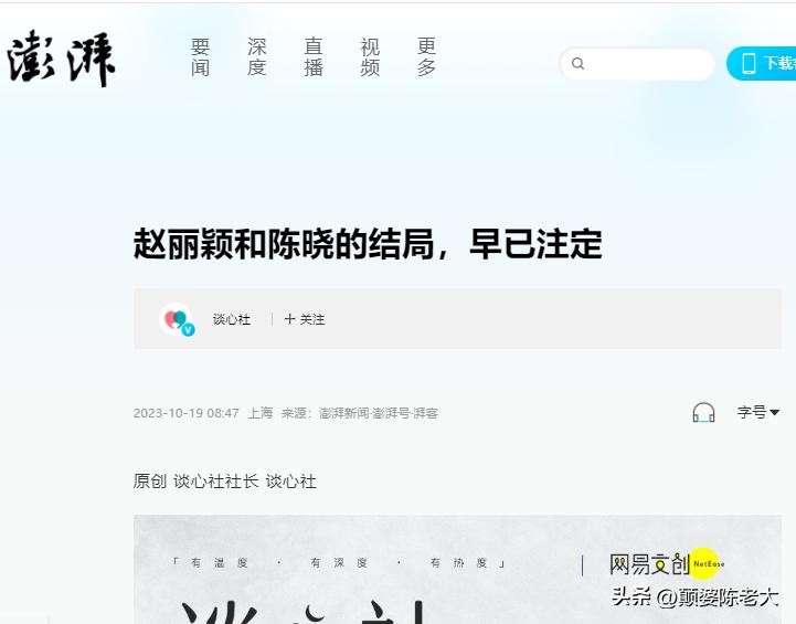 2. 澎湃新闻,2023.10.19,赵丽颖和陈晓的结局,早已注定