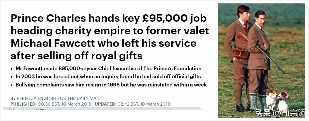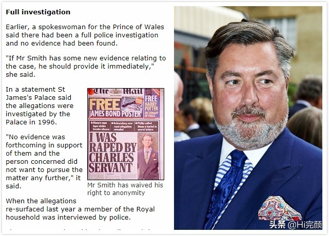 然后到了2003年,这位叫乔治·史密斯的男仆在《每日邮报》上公开指责查尔斯王子的高级的贴身男仆迈克尔·福塞特qj了他!