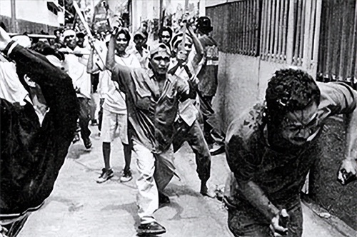 早在荷兰殖民时期,土著们就已经对华人不满许久,而苏哈托夺取政权的同时,又煽动人们的情绪,称印尼的经济困境和如今社会的矛盾都是因为有华人的存在这种蓄意。的挑拨让这些含恨已久的土著彻底爆发,他们开始对华人进行惨无人道的羞辱。如果有华人被发现,那么就会有一堆人上前殴打,而对此警察都是充耳不闻,有更甚者还会加入当地。一个华人被殴打致死,就激起了印尼人,那嗜血的基因,因为有着老美做靠山,苏哈托压根没有在怕的,甚至还颁发了一个奖励机制,只要杀掉一名华人,那就可以领取1万元印尼盾