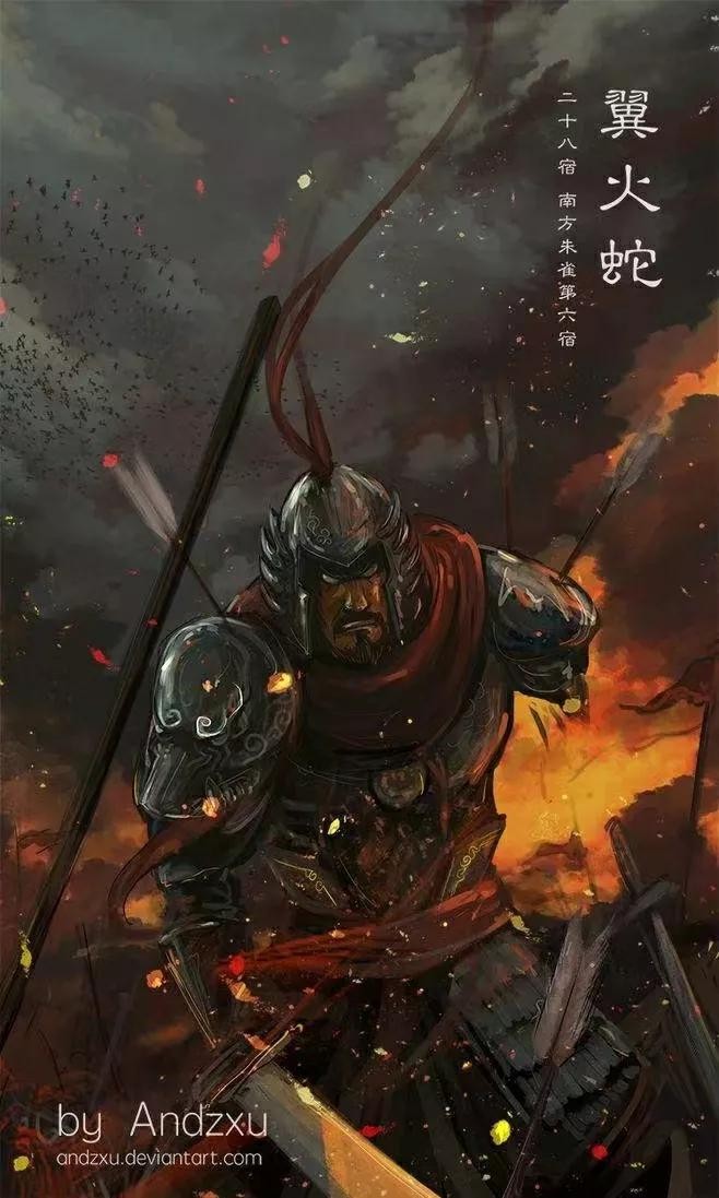 翼火蛇:南方翼蛇星君、翼宿天都星君。邳彤星君,字君信。南方朱雀七宿之一,二十八星宿之一。姓王名蛟(一说姓张名奴子)。