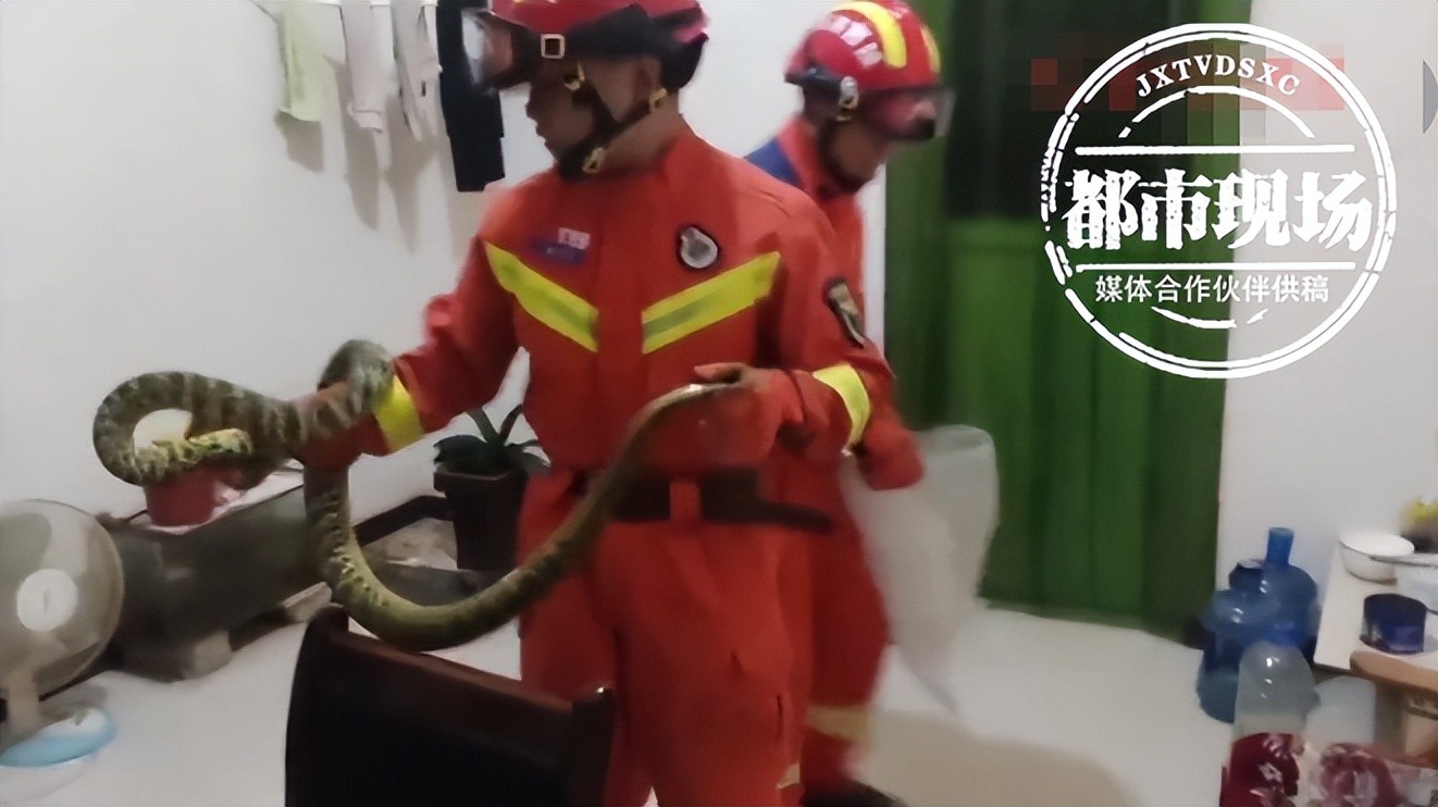 房内惊现近2米长大蛇,消防员“硬核”抓蛇