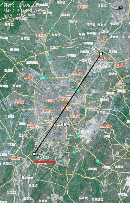 西南超大城市成都卫星地图,从卫星地图可以看到成都连成片的区域最大跨境已经达到60千米,同时成都的地铁公里数已经达到全国第四,成都也是全国仅有的两个双4F机场城市之一综合实力非常强劲!