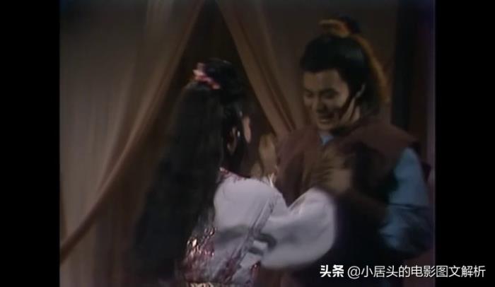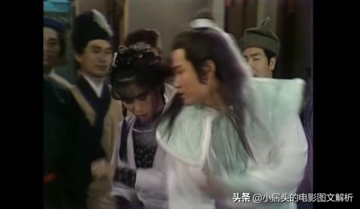 回到剧情啊,注意,我们的星爷又出现了,他是杨康抓来给梅超风练功的,出场不到五秒,被梅超风一掌拍死,不过呢,还是给了周星驰一点镜头的,能够看出来周星驰哆哆嗦嗦的样子,我猜这个哆嗦是周星驰自己加的,哈哈。