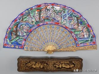 馆藏·清金银累丝烧蓝花卉骨牙片贴面庭院人物折扇