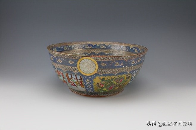 馆藏·清广彩开光阿拉伯文人物花卉纹碗