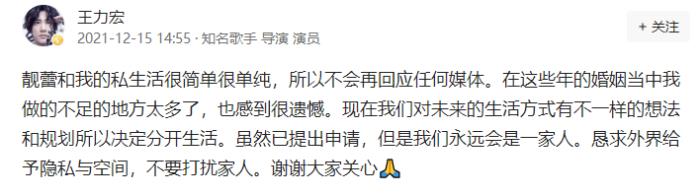 12月5日,王力宏官宣与李靓蕾离婚。这则消息一公布,顿时各路老少爷们搬着小板凳就开始围观了。按照往事的经验,这个瓜肯定是不小的