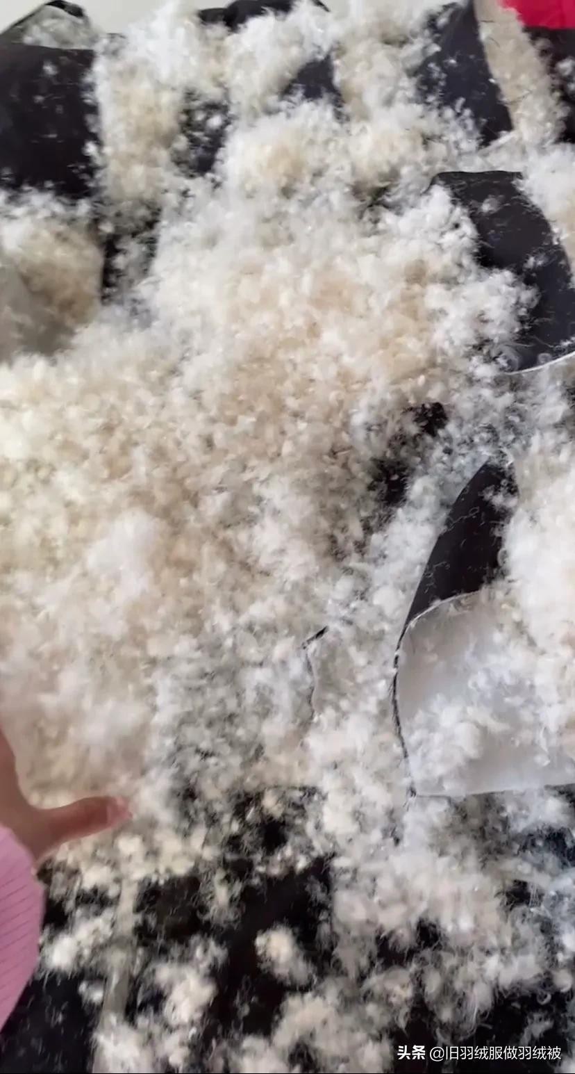 看看羽绒服里面的羽绒,绒质特别好,要是丢了那可以用损失惨重来形容了,羽绒的市价高,商标卖的成品羽绒被,也不便宜,有便宜的也不能保真,所以说用咱自己不穿的羽绒服做羽绒被经济还实惠,保证都是真的羽绒,不好的淘汰掉