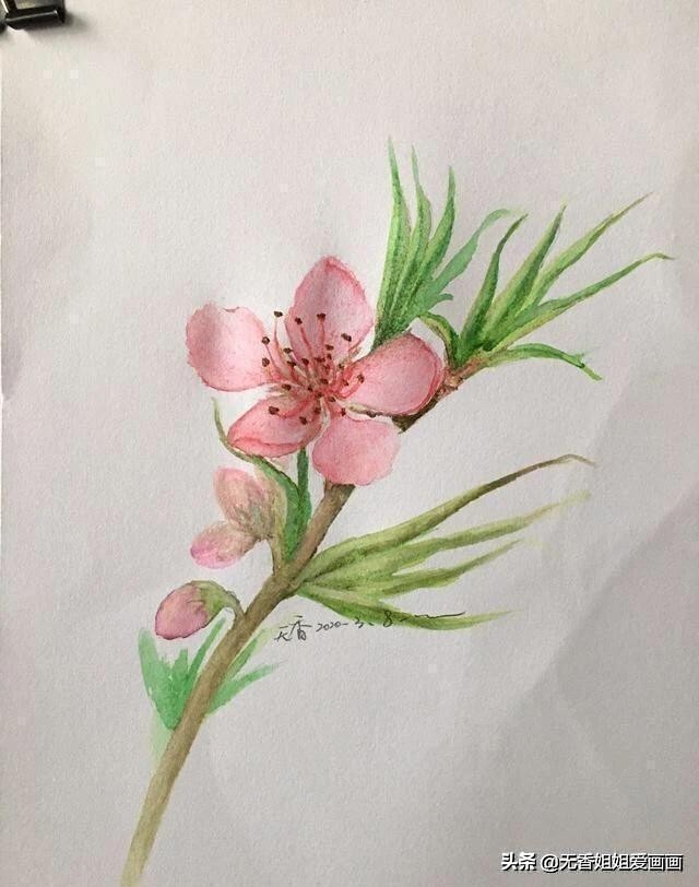 这样,一幅美丽的桃花图就完成了,我亲爱的小伙伴们,你们画好了吗,是不是非常的简单有趣味呢,如果你觉得还不错的话,不要光收藏不点赞哟~