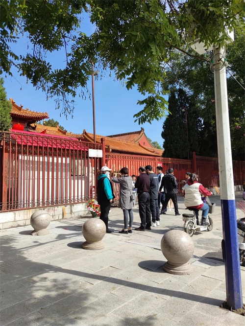 敬香拜佛的人们是络绎不绝,敬献花篮的也不少,还有在现场教孩子们如何拜佛敬香,大家都觉得柏林禅寺非常有灵性,所以人气非常旺盛,都在祈求风调雨顺,家人平安,健康长寿,颐养天年。