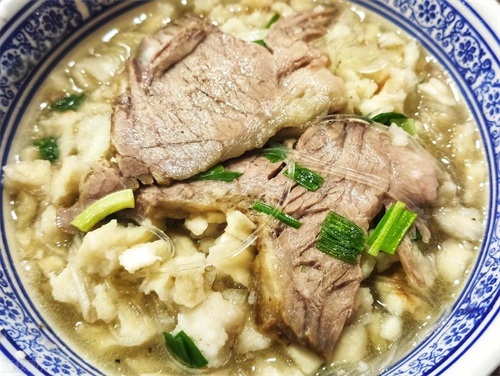 将羊肉切块,放入锅中焯水,捞出备用。另起一锅,加入适量清水,放入焯过水的羊肉块,再加入姜片、葱段、八角、桂皮、花椒、小茴香等调味料。大火烧开后转小火,慢炖2-3个小时,直到羊肉烂熟,汤汁浓郁。关火后加入适量的盐调味。准备好煮熟的羊肉汤、煮熟的羊肉块、泡好的黑木耳、泡好的粉丝、烙好的馍。将馍用手掰成小块,放入碗中备用。锅中倒入适量的羊肉汤和清水,加入黑木耳、粉丝,大火煮开后放入切好的羊肉块,再次煮沸。将煮好的羊肉汤、黑木耳、粉丝倒入碗中,加入适量的辣椒油和青蒜末,搅拌均匀。羊肉泡馍做好后,可以根据个人口味加入辣椒酱和糖蒜等调料。