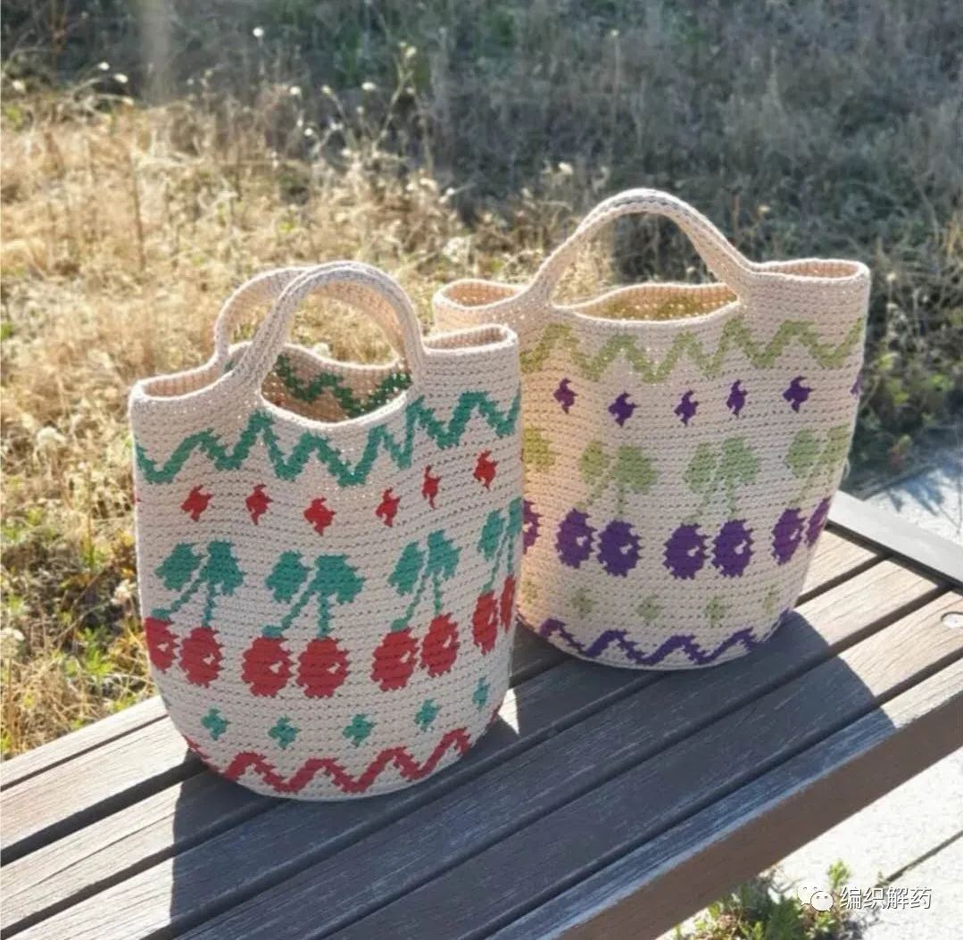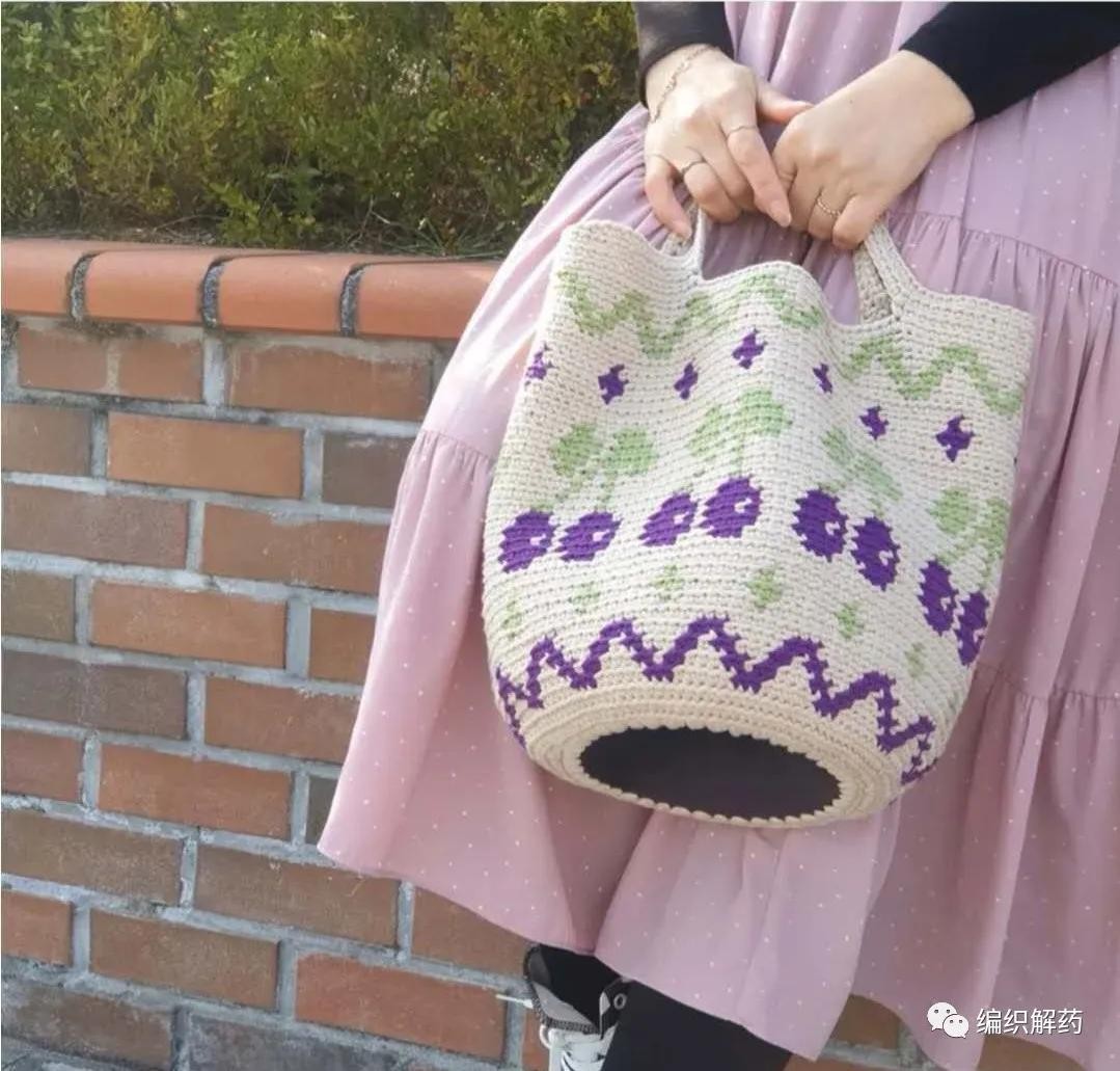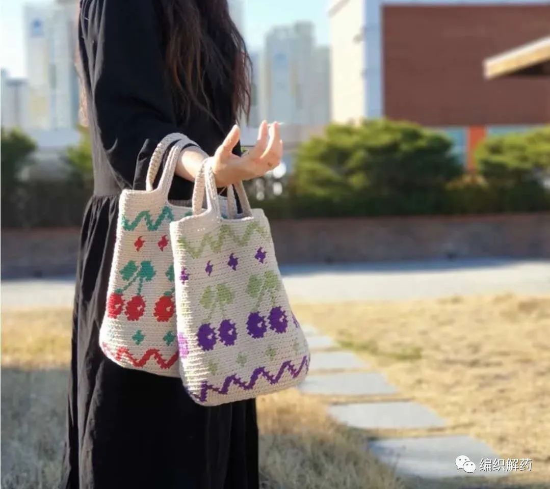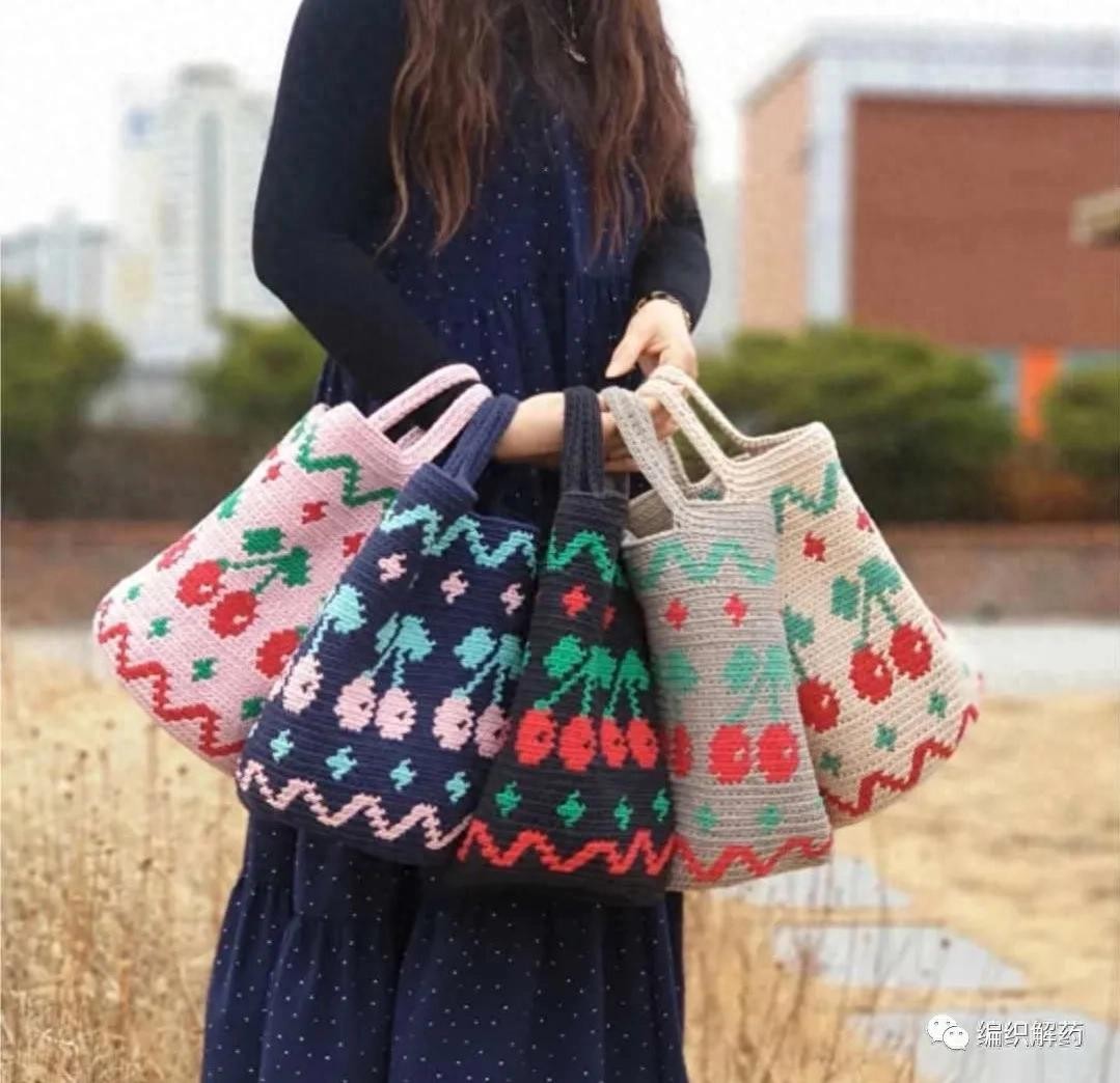 手工编织时尚的包包,带上她去和春天约会吧(钩针樱桃包包图解)