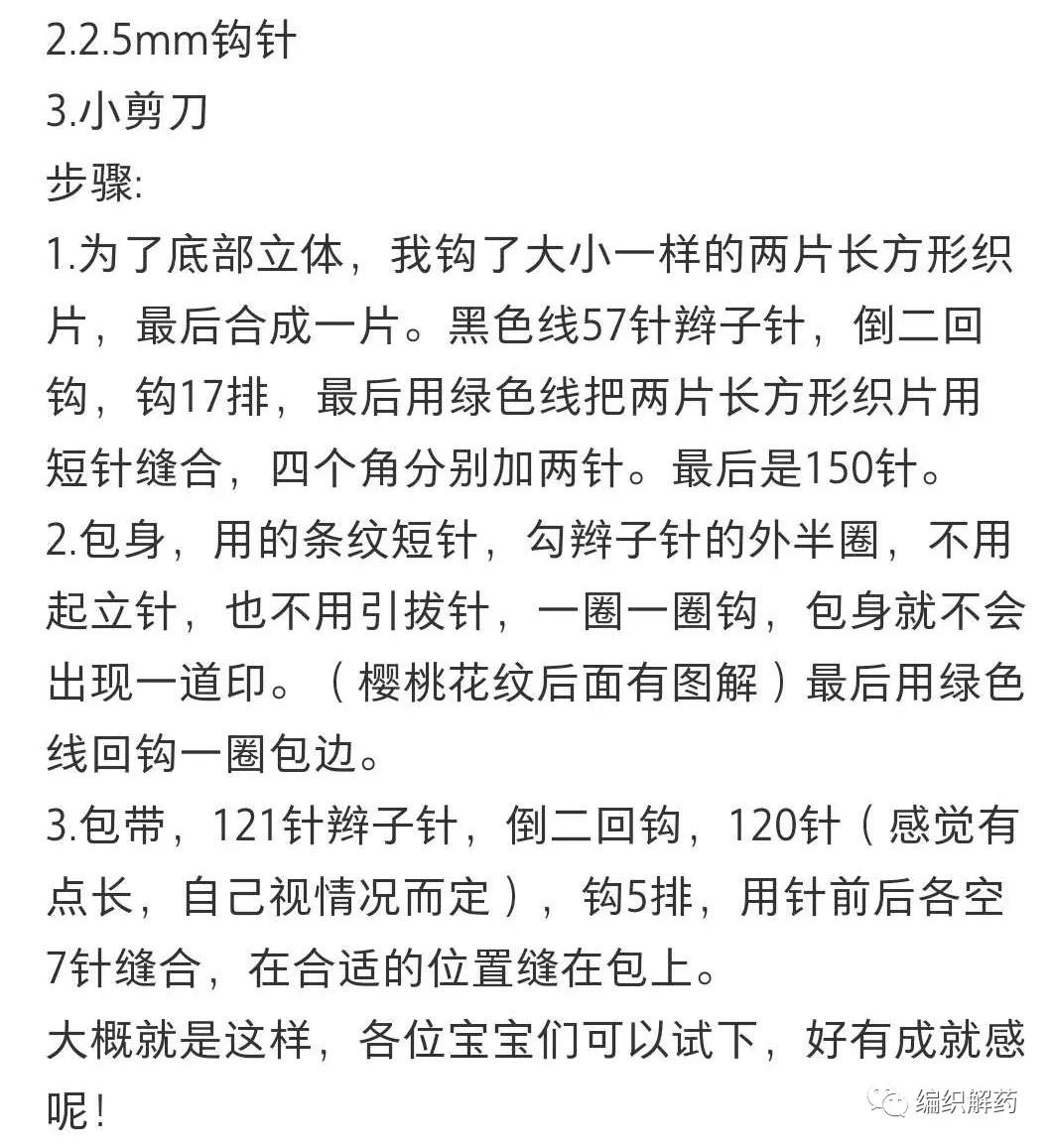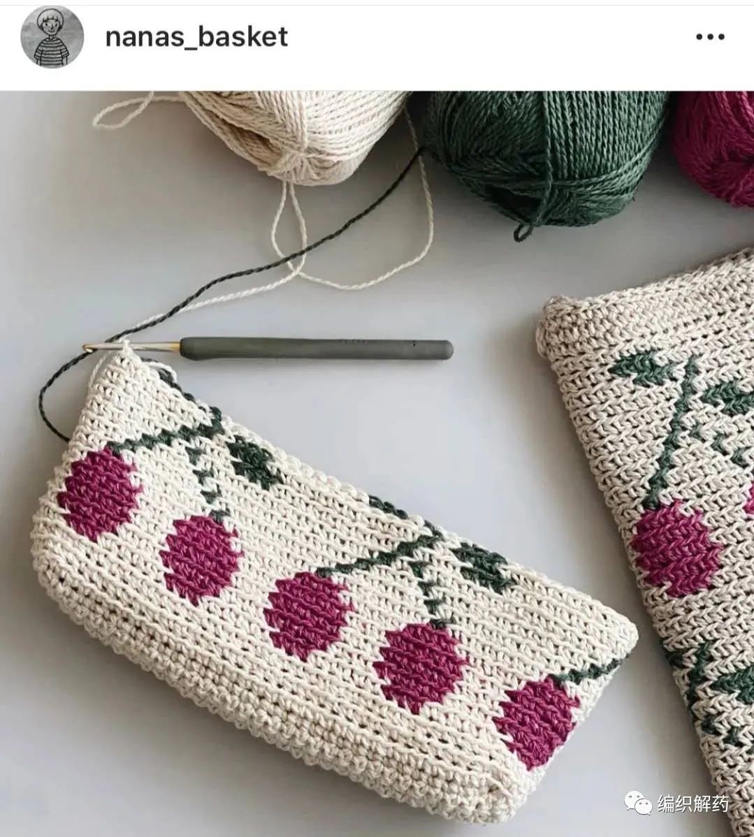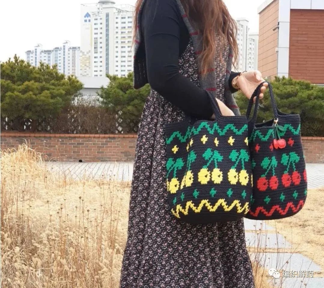 手工编织时尚的包包,带上她去和春天约会吧(钩针樱桃包包图解)