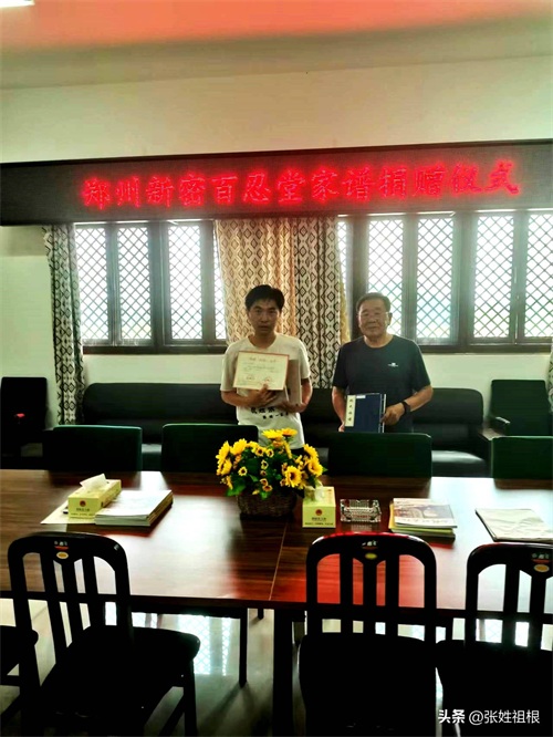 捐赠仪式上,张春喜会长向捐赠者颁发了《收藏证书》和《中华张姓之根》等书籍。代表濮阳张姓研究会对捐赠者表示衷心感谢,并表示族谱是我们中国以血缘关系为主体的家族繁衍、人物历史记载的一种特殊文献。一部族谱,是一个宗族的生命史、发展史。新密百忍堂《张氏族谱》的捐赠,进一步丰富了张氏家谱馆的馆藏资源,同时能使家谱得到更好地保存和深入研究,发挥见史识今、启迪后人的社会作用。