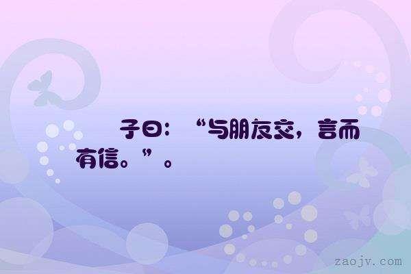 古人说,‘与朋友交,言而有信’”。“与朋友交,言而有信”出自《论语·学而》,意思是同朋友交往,一定要守信用、讲诚信、重承诺。一个“信”字,既是中国传统智慧的重要内核之一,也是中国人的鲜明底色。