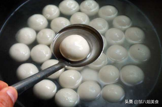 2、煮汤圆也有讲究,最好先放水里泡一会儿,表面吸收水分,也回回温,煮的过程中不开裂不露馅,煮得好才能炸得好。