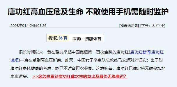 因为流血,网络上还出现了谣言,有人说唐功红为了夺冠七窍流血,还说她被送到医院的ICU才抢救过来。