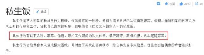 先给大家来科普一下私生饭的意思,百度百科是这样说的。