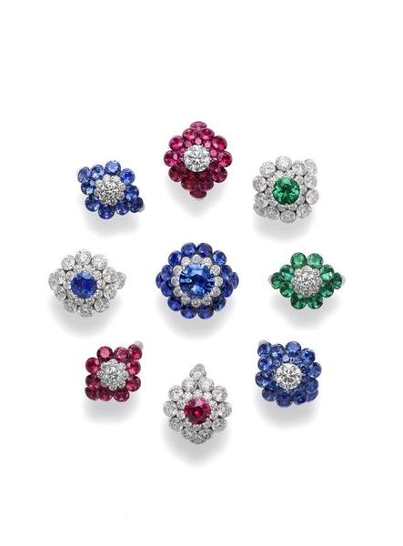 全新Magical Setting系列。锦簇戒指、吊坠及耳环采用创新镶嵌技术,钻石和彩色宝石展现前所未有的光彩。每丛锦簇均居于醒目迷人的单颗宝石中央,周围环饰瞩目的硕大宝石,为隽永设计赋予出人意表的前卫现代气息。玲珑珠宝采用创新镶嵌技术。
