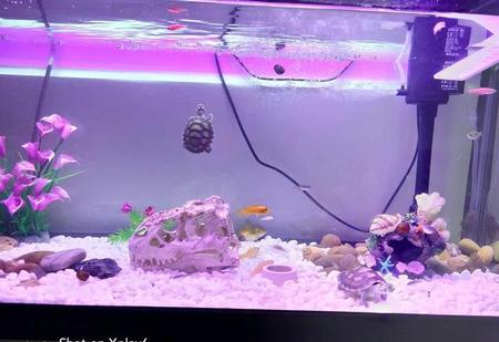 所以,如果想把龟养好,就要尊重她的自然习性,你不光需要一个能离开水面的陆地,比如一块石头,或者一块沉木,或者买一块浮岛等等,并且,如果能有一个热源来给岸提供热量,那就更理想了。
