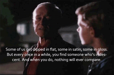 Some of us get dipped in flat, some in satin,some in gloss. But every once in a while you find someone who's iridescent, and when you do, nothing will ever compare.