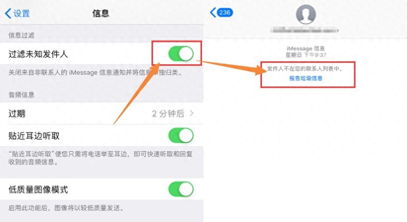 已经升级的用户,你可以打开设置-信息-过滤未知发件人(开启)即可屏蔽那些垃圾广告,但具体是否百分百屏蔽目前未知,我们知道的是,它可以屏蔽广告内容和显示“报告垃圾信息”链接,接收是否能屏蔽,还需要测试。