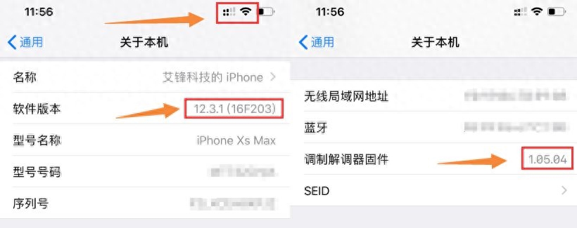 iOS12.3.1 版本号 16F203 ,调制解调器版本号(基带) 1.05.04 ,iOS12.4 基带版本号为 1.06.01,在iOS12.3.1系统信号可能比iOS12.4 差,只是可能,并不是说所有机子都这样,小编的 iPhone XS Max 升级到 iOS12.3.1 信号 确实有点差,就二格到三格,可能是我的所在地方问题。