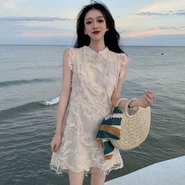 这身米白色蕾丝绣花裙,内里是纯棉材质,外面用蕾丝的面料采用了绣花的工艺,总体看起来非常有气质,而且米白色也非常的显白,不管是日常穿,还是旅游拍照穿,都是很合适的。