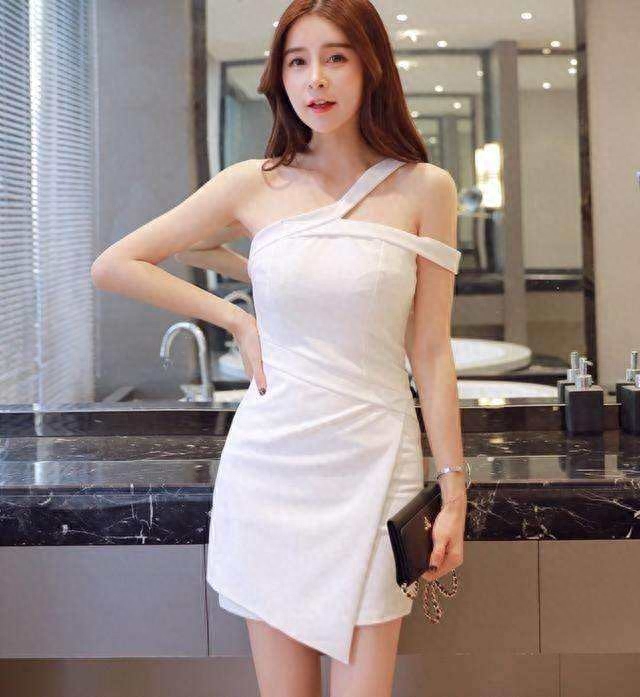 白色单肩裙,这条裙子剪裁上十分独特,将好身材完美的衬托出来,非常的大气,妩媚的同时还有一点保守,聚会穿就是夺目小仙女本人啦!