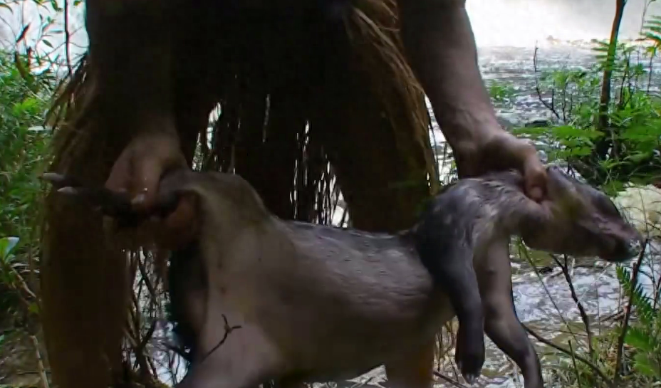 树上的果子德爷也没放过,拿起来就往嘴里塞,回窝的路上,德爷发现了美洲虎吃自助的痕迹,吓得他赶紧逃离案发现场。